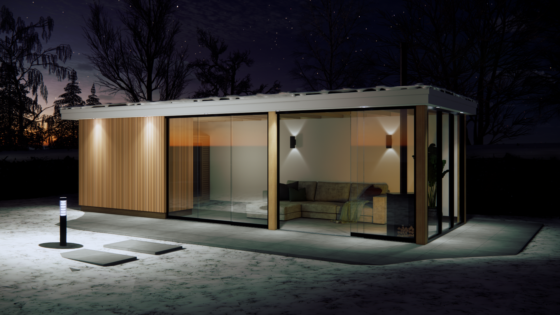 Breng stijl, comfort en functionaliteit samen in je tuin met dit exclusieve, moderne tuinhuis. De combinatie van warme houttinten en grote glazen wanden zorgt voor een open, lichte sfeer waarin binnen en buiten moeiteloos in elkaar overlopen.