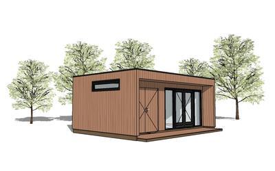 Modern vormgegeven tuinkantoor uitgevoerd met onderhoudsarme materialen.